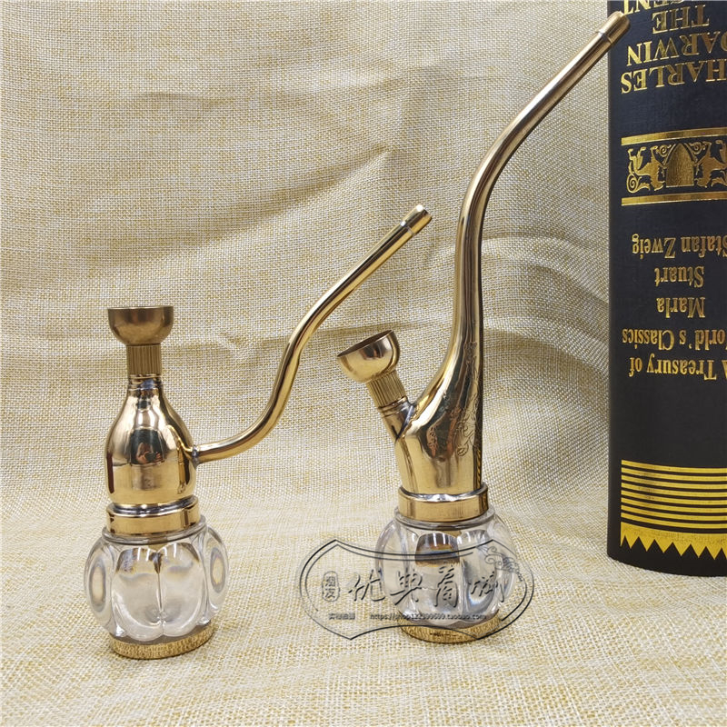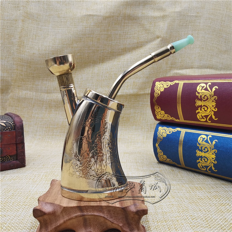 Brass dual-use water smoke pot water filtration plastic tobacco pipe metal smoke bag pan double with pure copper smoker-Taobao