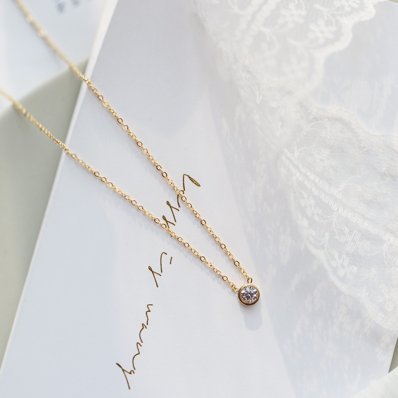 Not dropping color single drill gold small crowdsourced light extravagant necklace female summer neck necklace minimalist with lukewarm wind lock bone chain female pendant accessories