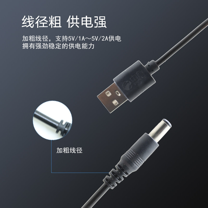 USB to dc5 5mm round hole round head mobile power router small fan sound charging power supply wire 5V