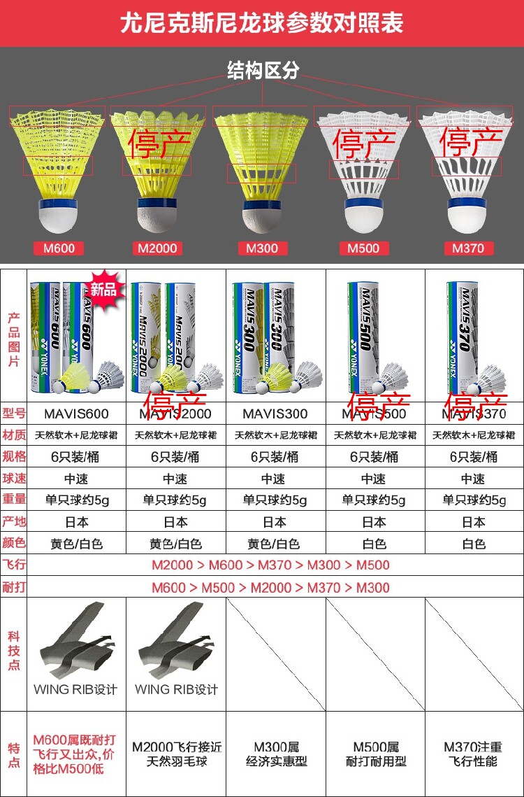 M300 white nylon ball (Yonex) M300 yellow nylon ball (Yonex) M600 yellow nylon ball (Yonex) M600 white nylon ball (Yonex)