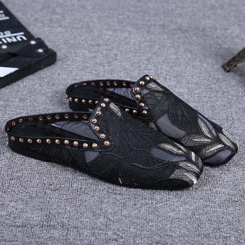 2022 summer new women's shoes flat toe half sandal slippers square head one pedal Muller shoes lazy mesh slippers