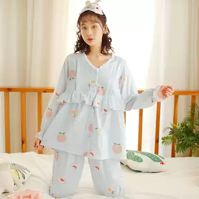 Fuduo confinement clothes Spring and summer pure cotton gauze postpartum lactation nursing clothes Pregnant women pajamas summer thin maternity home clothes