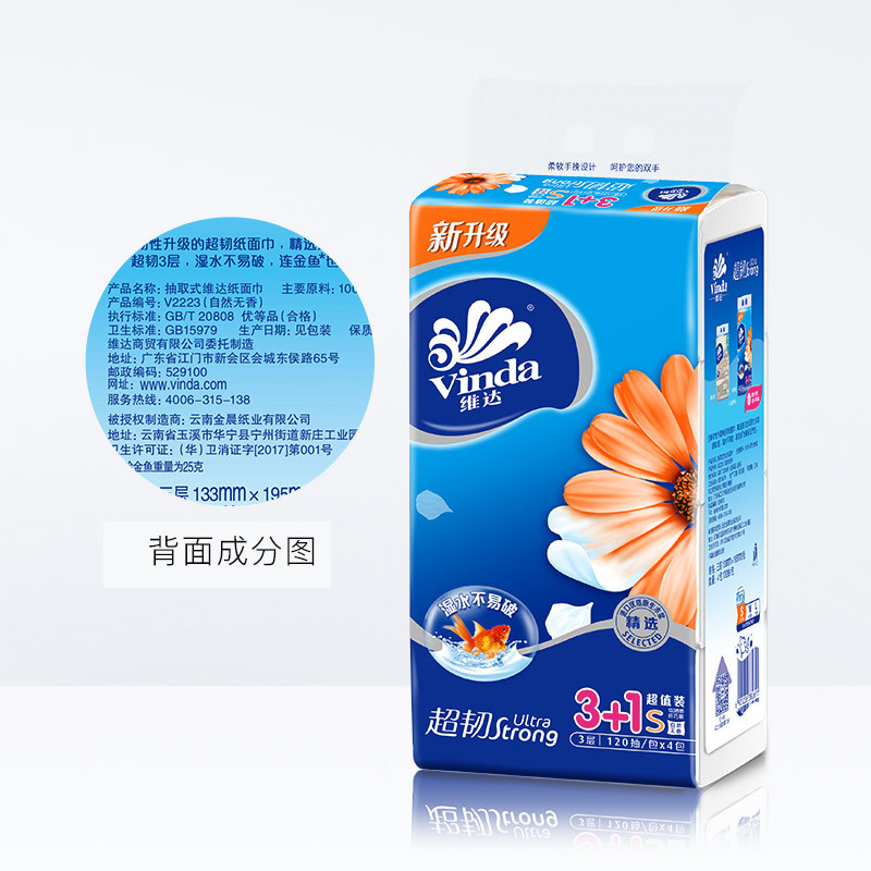 Vida ultra - toughness series soft pack pump tissue 3 layer 120 draw 16 pack 4 pack toilet paper without slag - solid pack