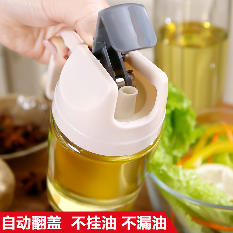 Olaf large oil pot Automatic opening and closing oil bottle Leak-proof glass oil pot Kitchen household soy sauce wine vinegar oil tank