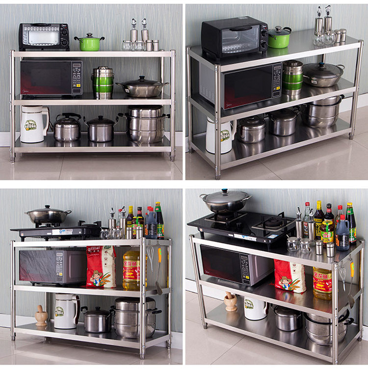 Stainless steel kitchen shelf Floor 3-layer oven microwave oven shelf 4 balcony storage finishing cupboard Vegetable rack