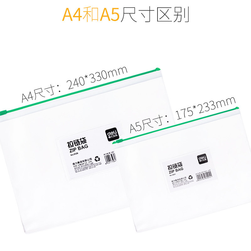 Deli file bag Soft graduate school transparent bag special bag exam rewritable file bag PVC zipper storage bag a6 small thickened A4 office plastic sealed moisture-proof waterproof information bag