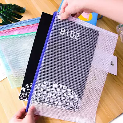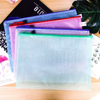 Examination stationery bag plastic waterproof pen bag official document case kit information kit office supplies wholesale thickened file bag transparent grid zipper bag A4 test paper storage bag for students