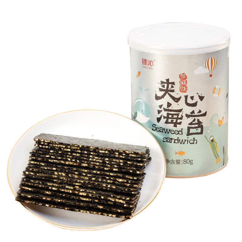 (Delicious)sesame seed sandwich seaweed 80g*2 cans seaweed crisp bulk bagged children pregnant women snacks dried seaweed