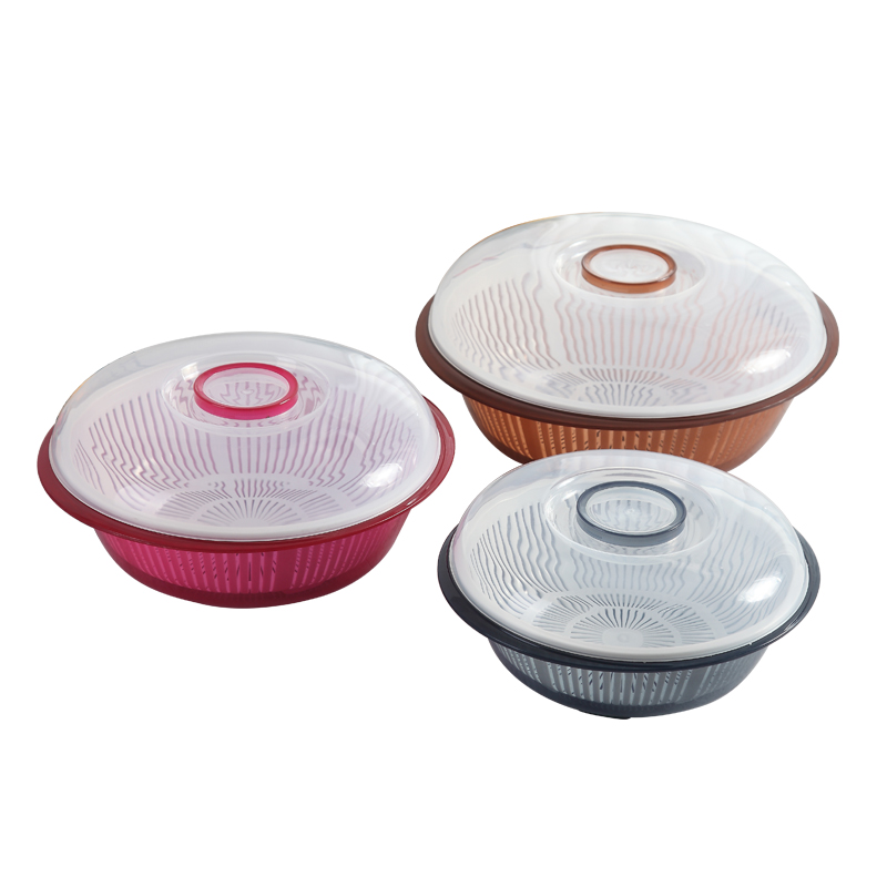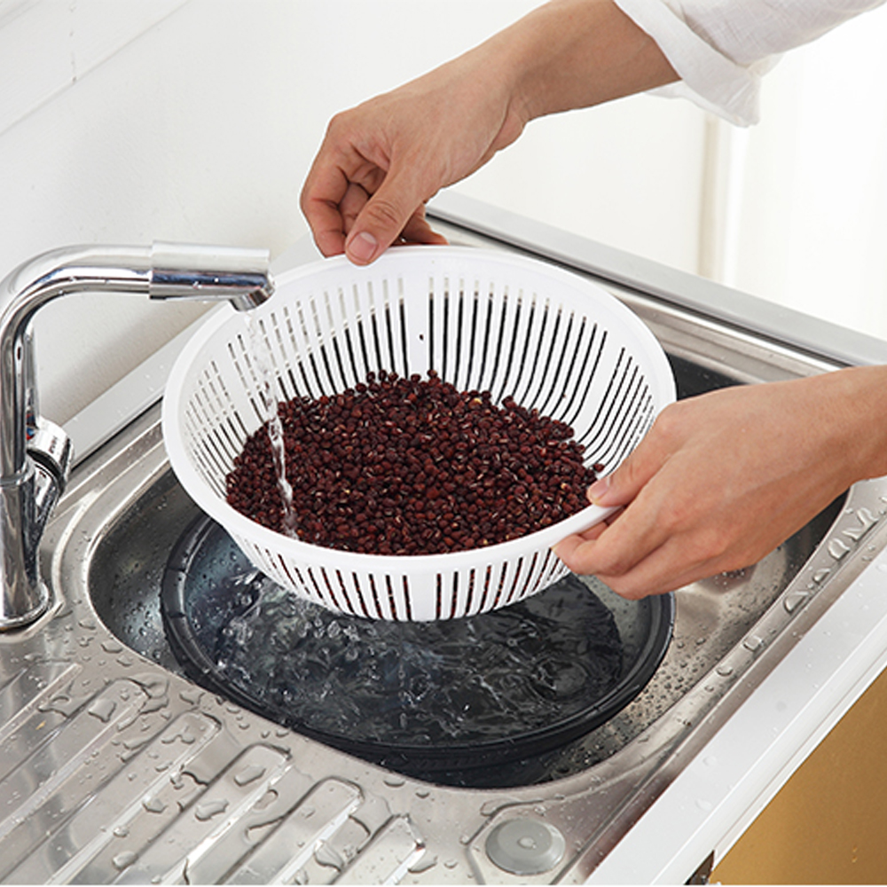 Double drain basket thickened plastic washing basin washing basket Household kitchen Amoy rice washing basket fruit and vegetable blue leak basket