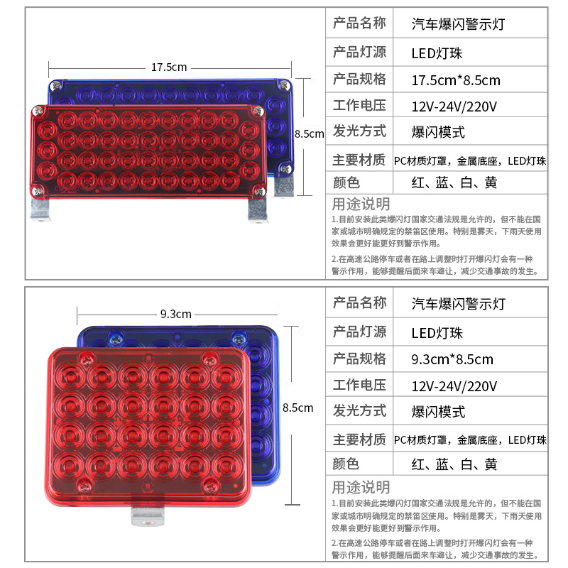 Car flashing led warning signal light 12V24V Truck school bus trailer security guard booth strong light two-color 220V