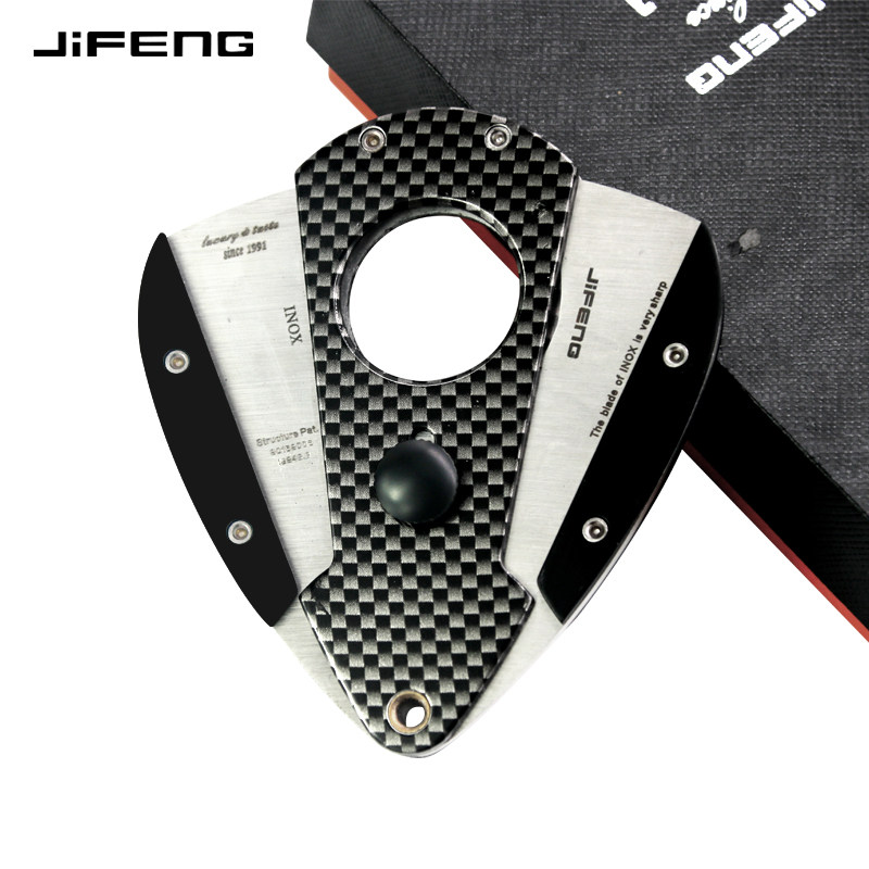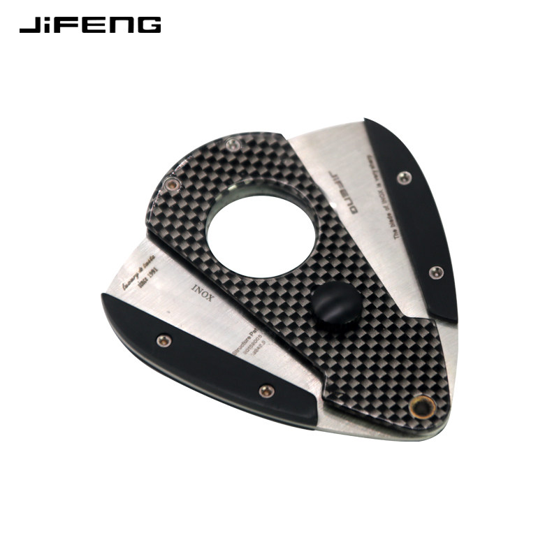 jifeng cigar scissors German stainless steel cigarette cutter portable zinc alloy carbon fiber cigar scissors with leather case