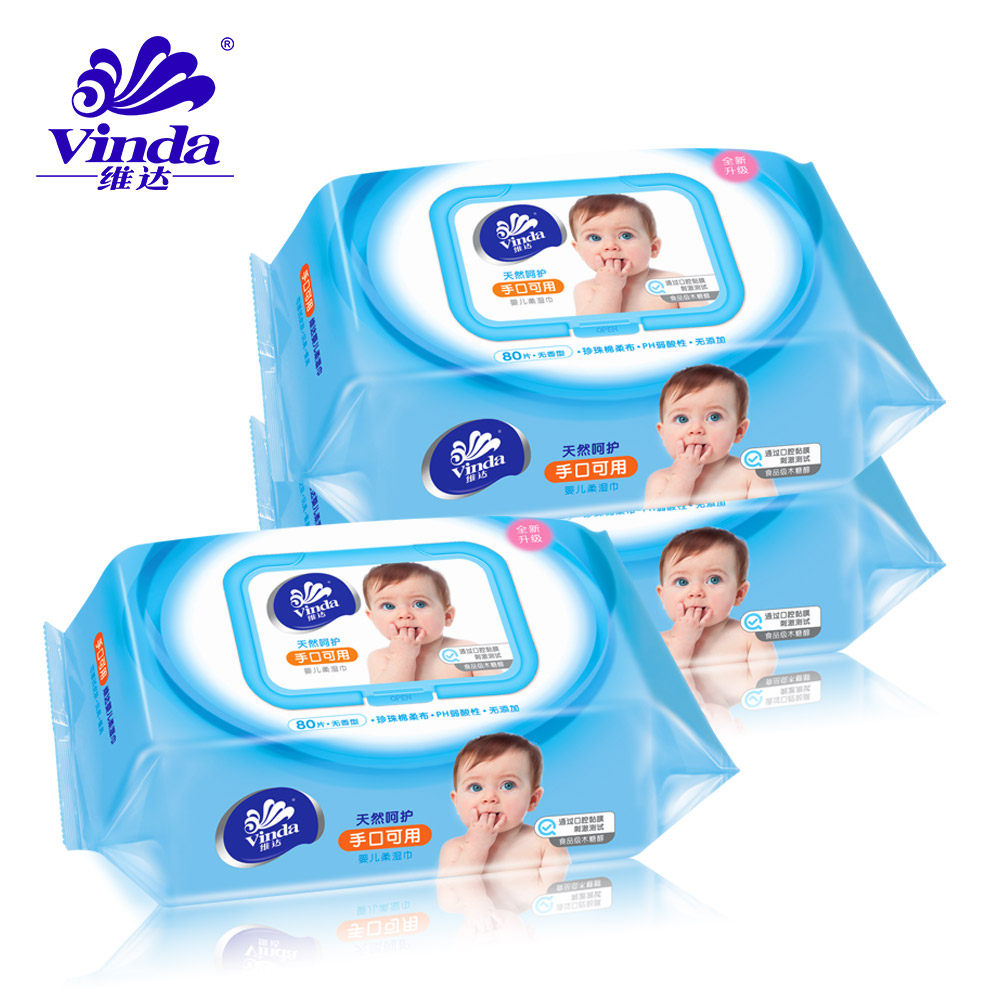 Vida baby wipes hand and mouth can be used 80 pieces * 3 packs baby soft wipes with cover cleansing and fragrance-free wet wipes