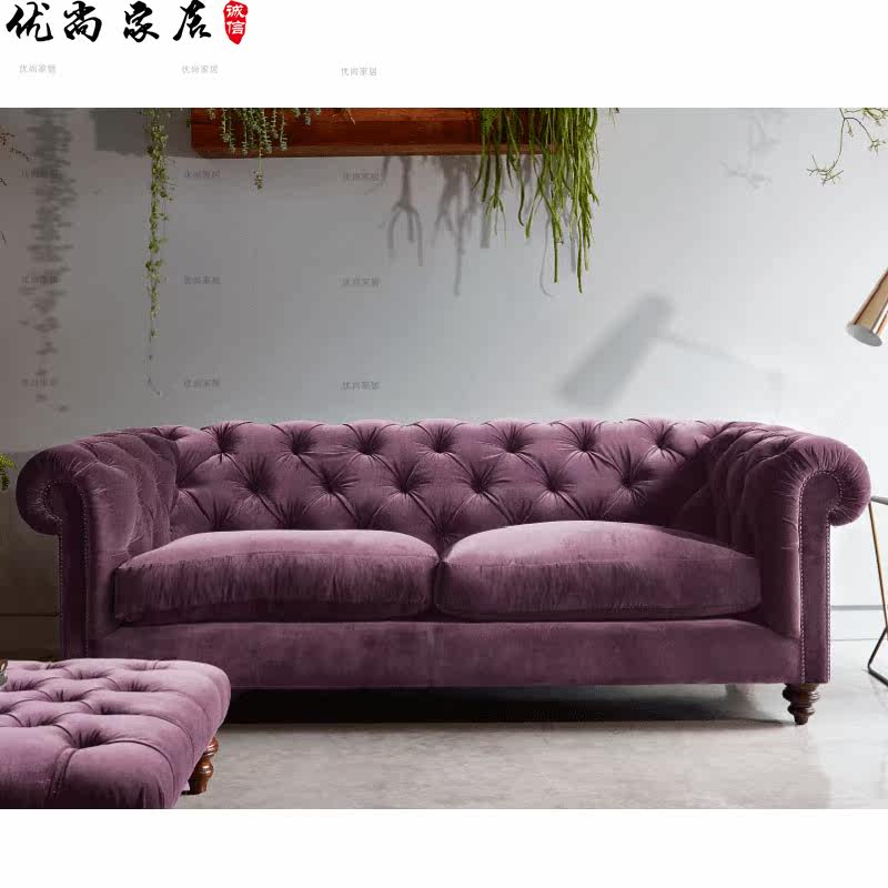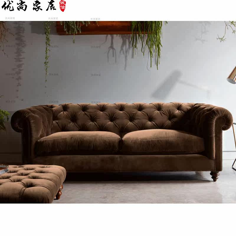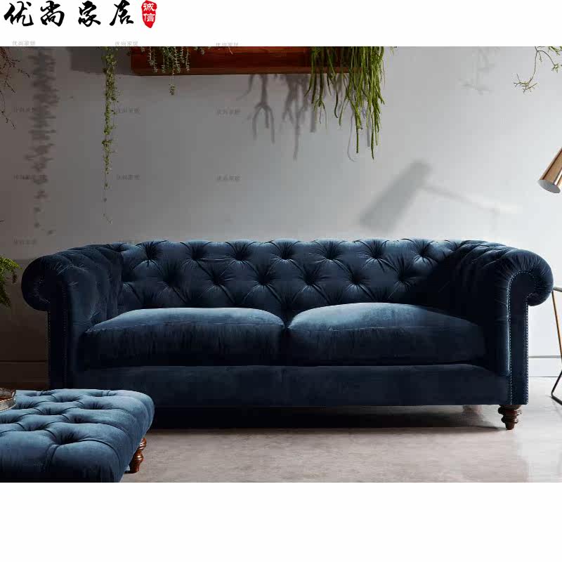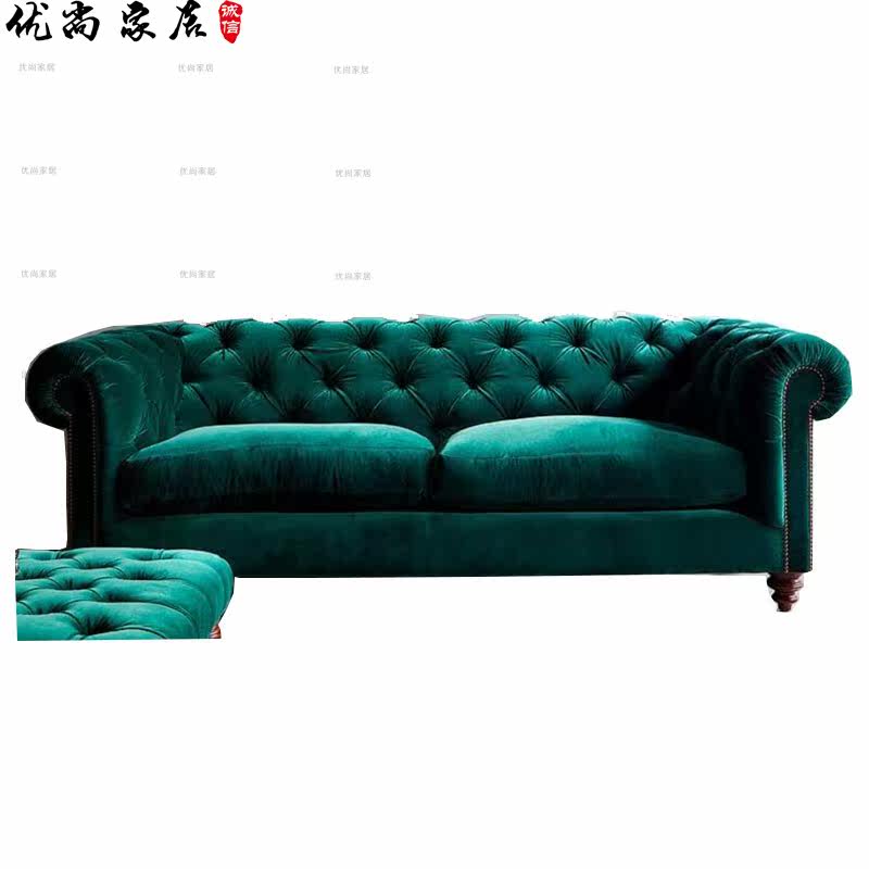American country dark green retro three-person velvet sofa Nordic modern minimalist leisure living room combination net red sofa