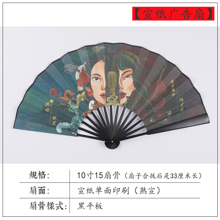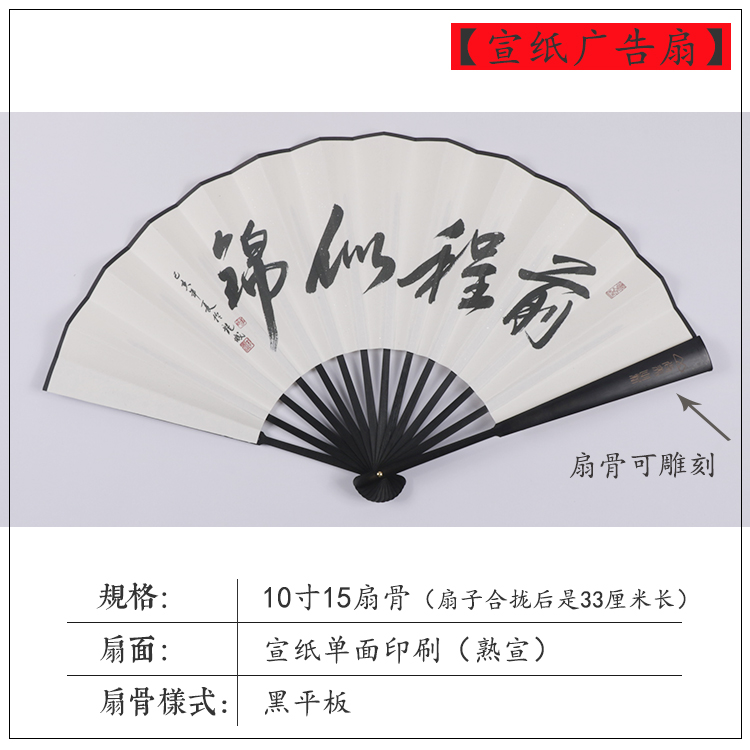 Rice paper folding fan paper fan calligraphy and painting fan advertising fan custom made full color black and white carving fan bone