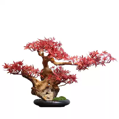 New Chinese maple leaf welcoming pine bonsai Zen decoration flower pot living room entrance tea room decoration solid wood root art