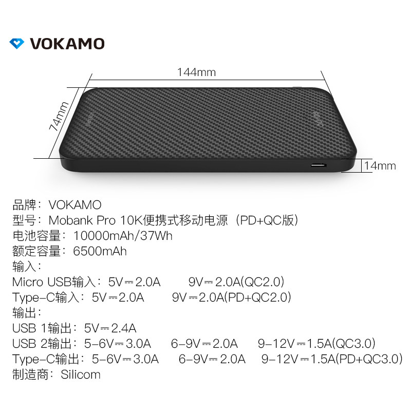 VOKAMO mobile charge 10000 mAh super capacity type-c flash charge PD fast charge suitable for Apple mobile phone power supply compact mini portable carry can be on the plane quickly punch treasure