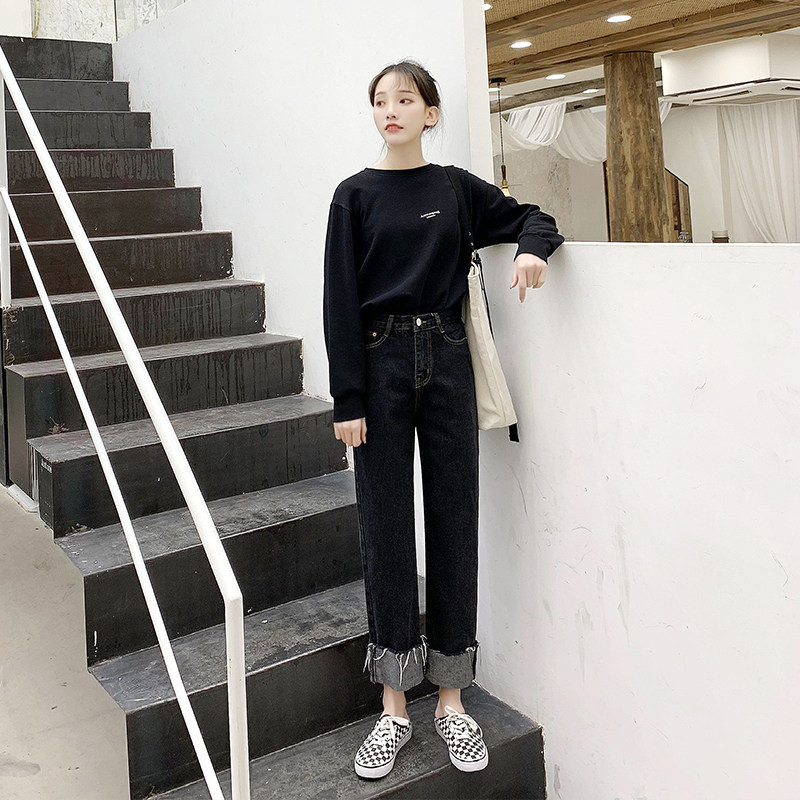 2021 new summer wide leg jeans large size women's pants fat mm tide high waist Korean version of thin 200 pounds nine-point pants