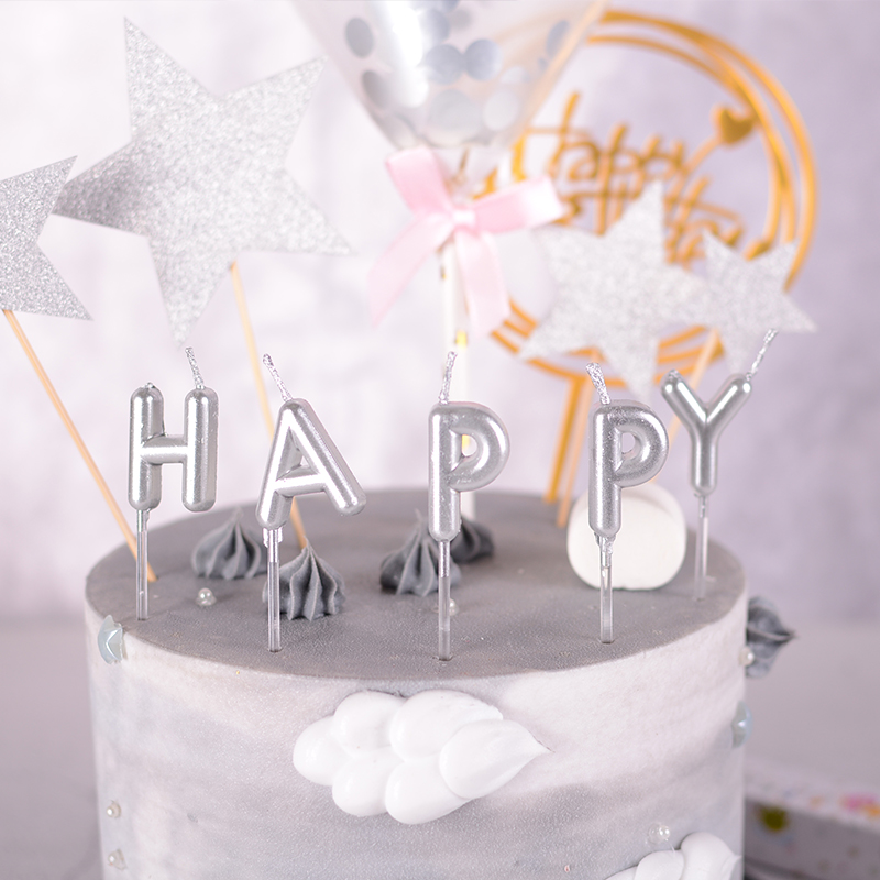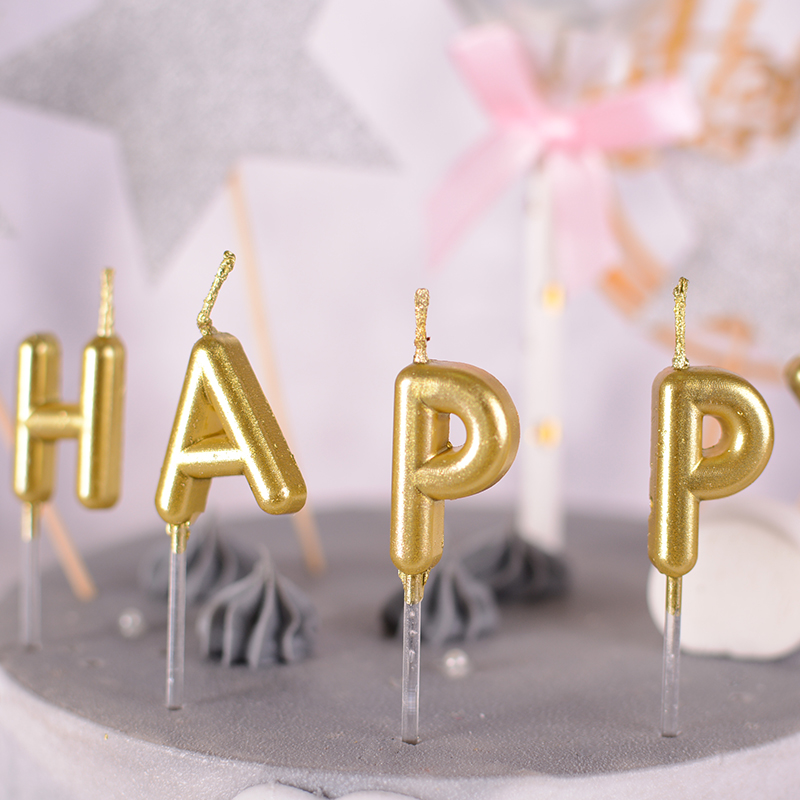 Birthday Candle Golden Silver English letter party placement Creative romantic HAPPY cake Smoke-free candle