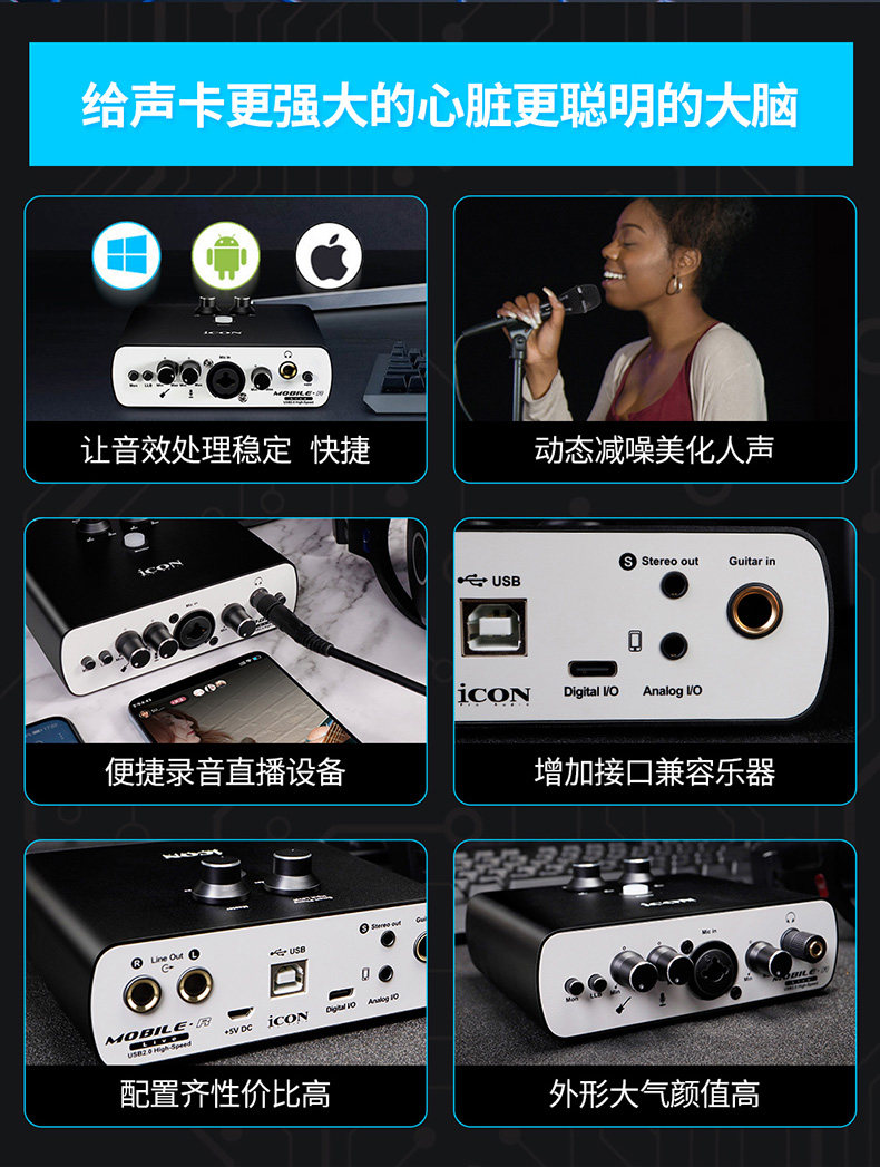 Aiken ICONMobileR external link sound card suit mobile phone live singing professional recording using brand new
