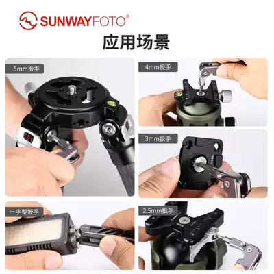 Shengwei DW-02 EDC tripod pan-tilt plate hexagon screw wrench multifunctional combination set foldable alloy steel head keychain photography tool accessories