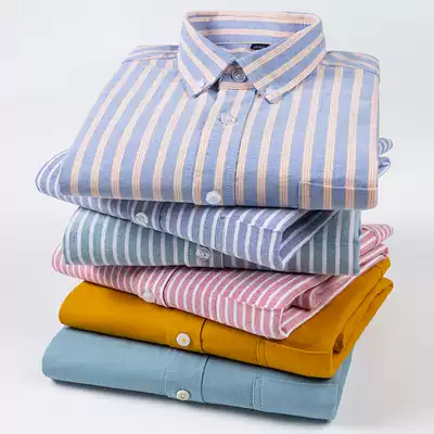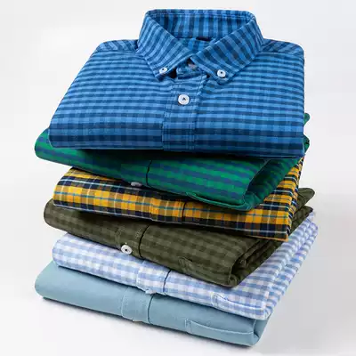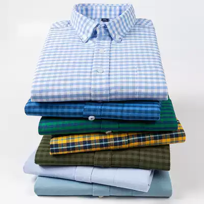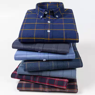 Spring new men's long-sleeved large plaid pure cotton shirt youth casual oxford spinning shirt with fat plus size