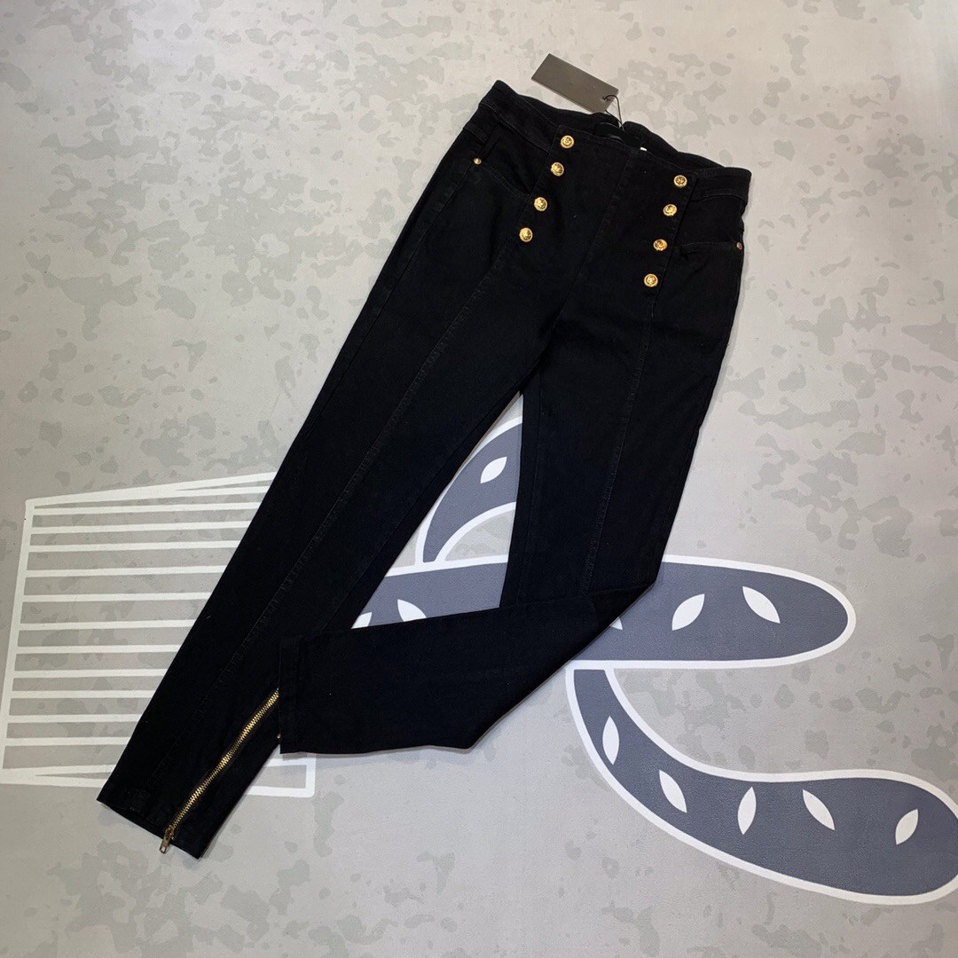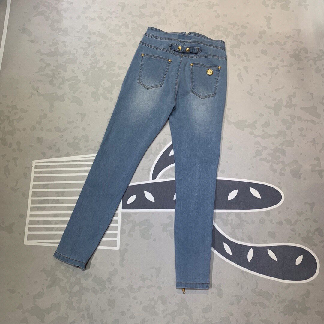European station 2022 autumn and winter fashion double-breasted gold buckle three-dimensional stitching small feet high-waisted stretch slim nine-point jeans
