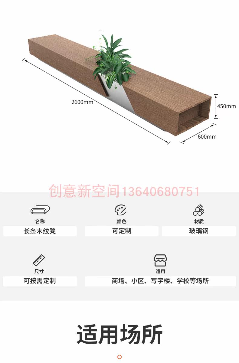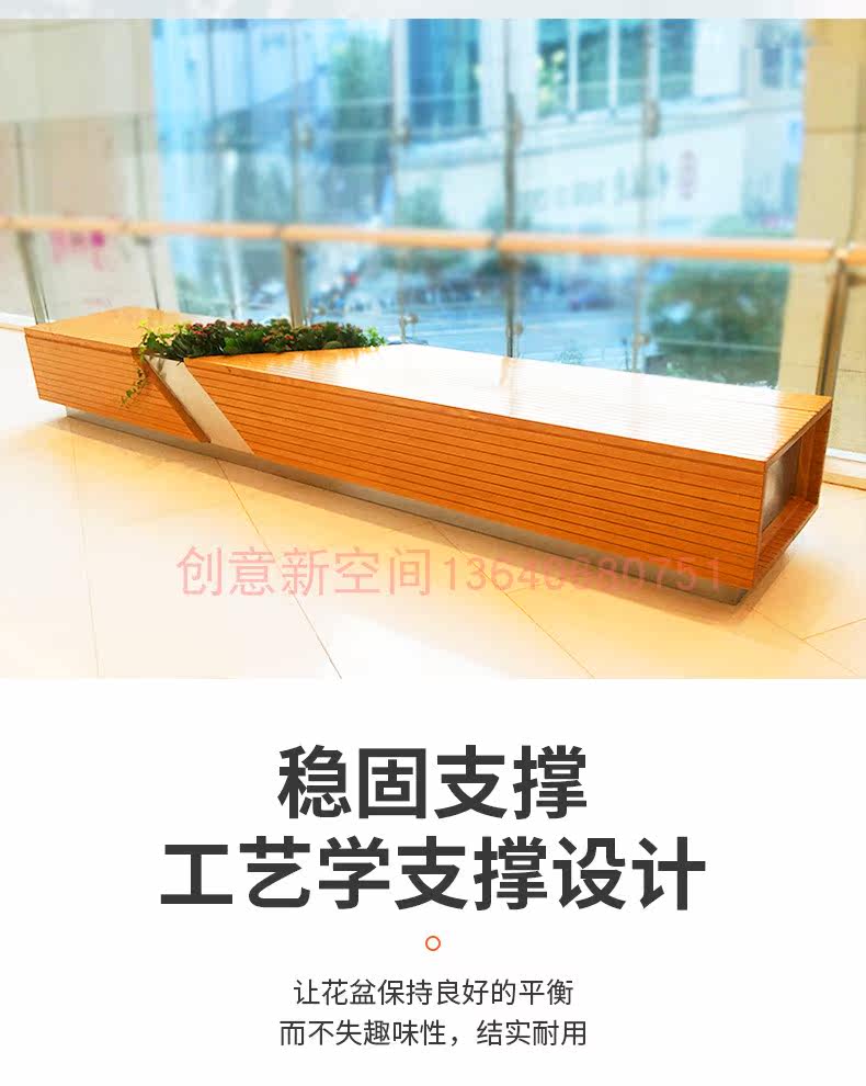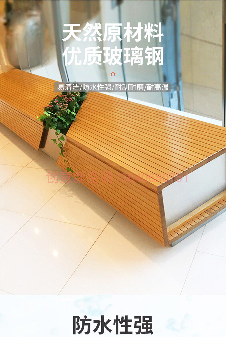 Public lounge area waiting for chair glass fiberglass leisure seat shopping mall simplified flower pot combined solid wood bench