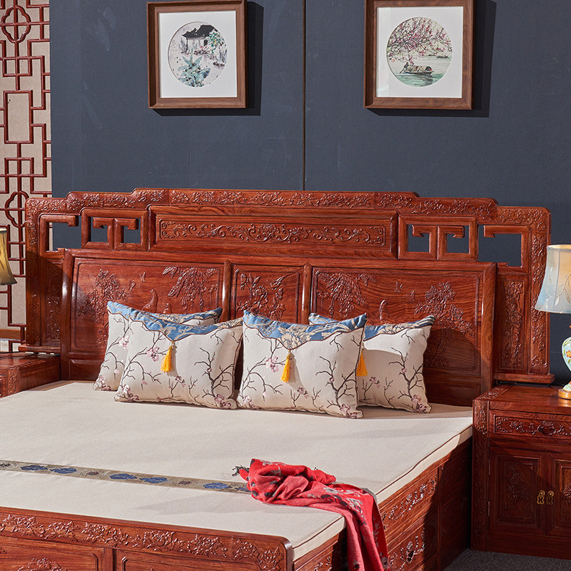 Solid wood bed Redwood furniture Hedgehog Purple Sandalwood Chinese Imitation Antique Flowers Pear Wood Large Bed Bedroom Wedding Bed Master Bedroom With Double Bed