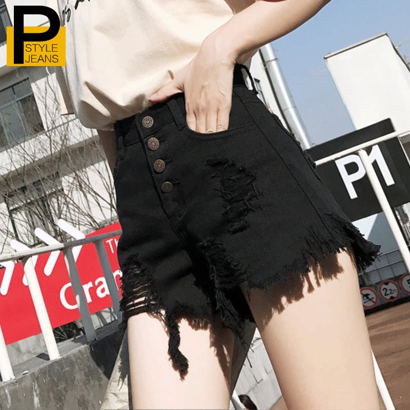 Black slim high waist denim shorts women 2021 new style outerwear trendy loose summer a-line ripped hot pants sexy super