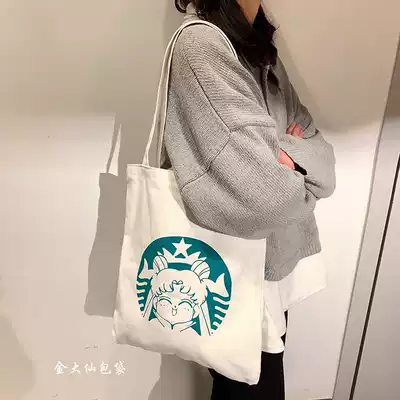 Women's bag canvas female chic literary retro college style shoulder canvas bag large capacity Korean hand-held canvas bag
