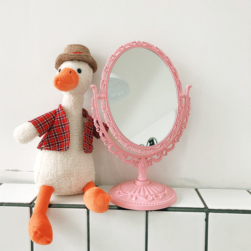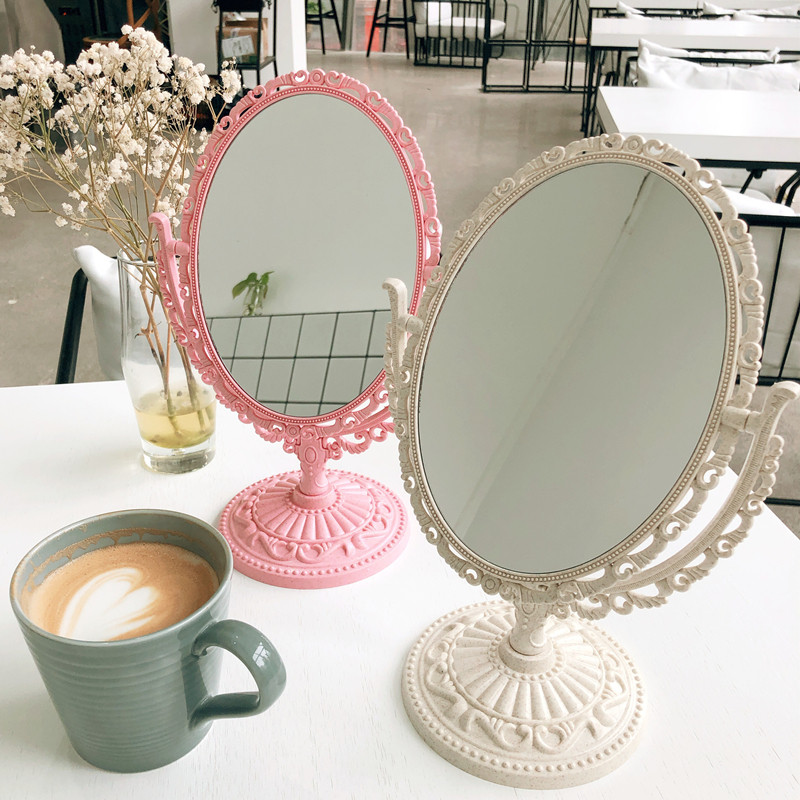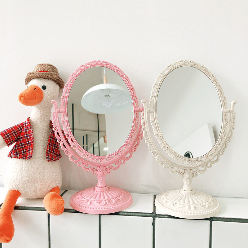 ins Korean style simple girl heart European style mirror Princess style embossed dormitory desktop handle makeup mirror makeup mirror
