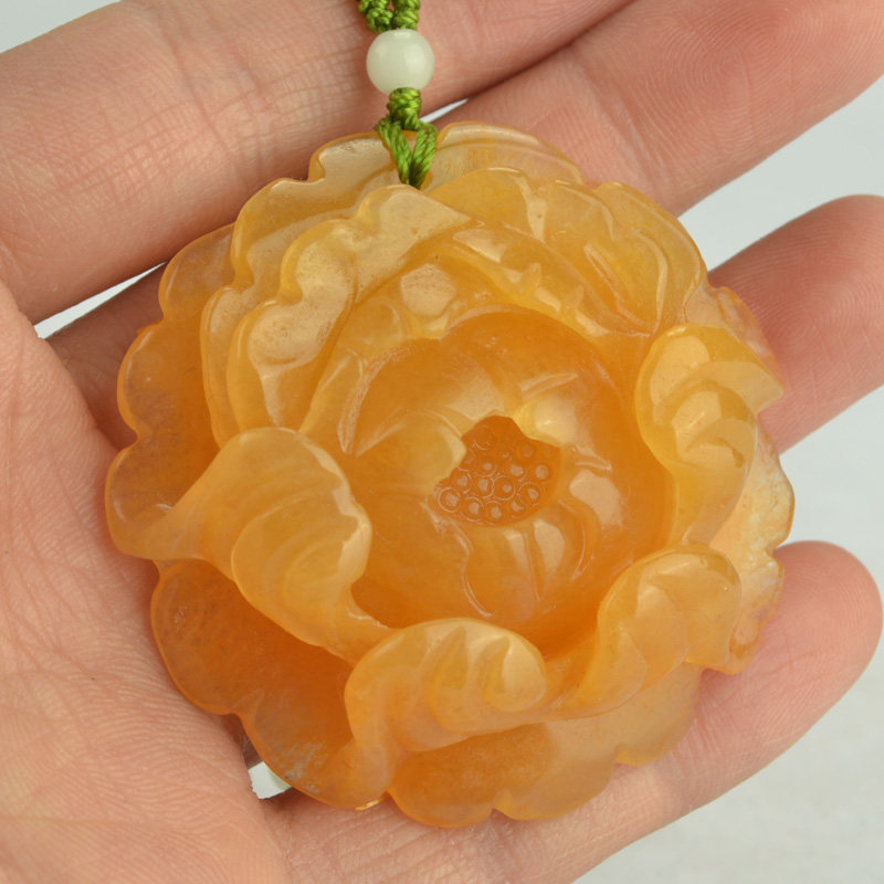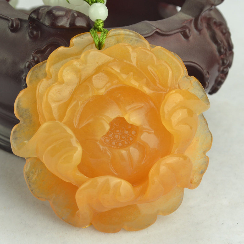 Natural Yunnan Huanglong jade peony flower pendant pendant jade pendant versatile sweater chain peony flower necklace women's gift