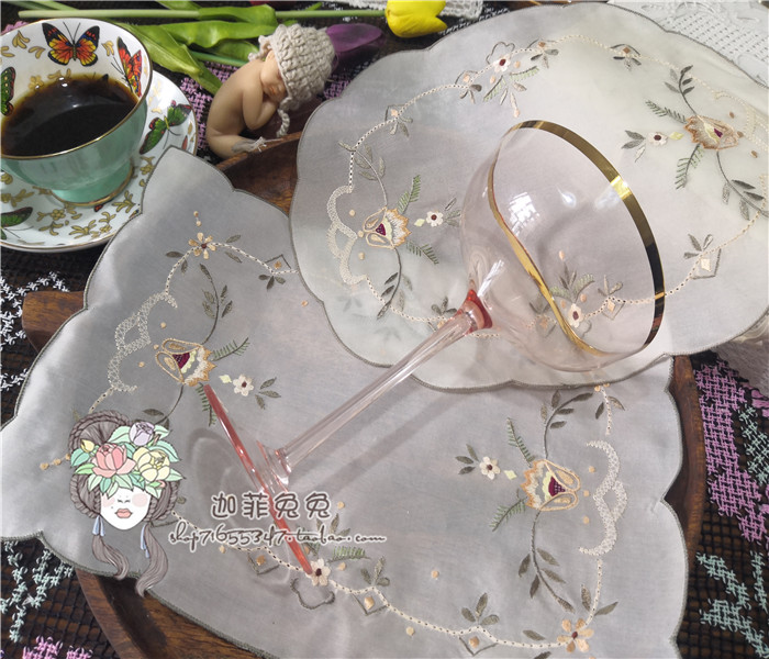 Collectibles * foreign trade export Europe and the United States retro raw silk hand-embroidered placemat plate mat vase mat multi-spec