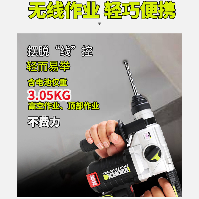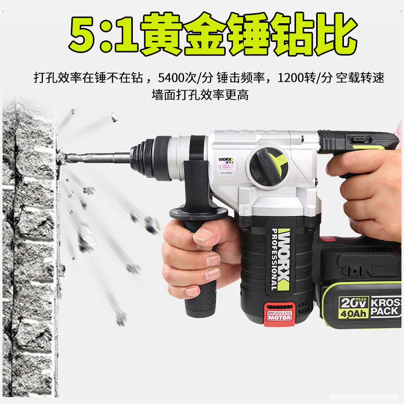 Witx lithium electric hammer WU388 charging hammer brushless lithium electric shock drilling electric drill multifunctional electric light electric pick