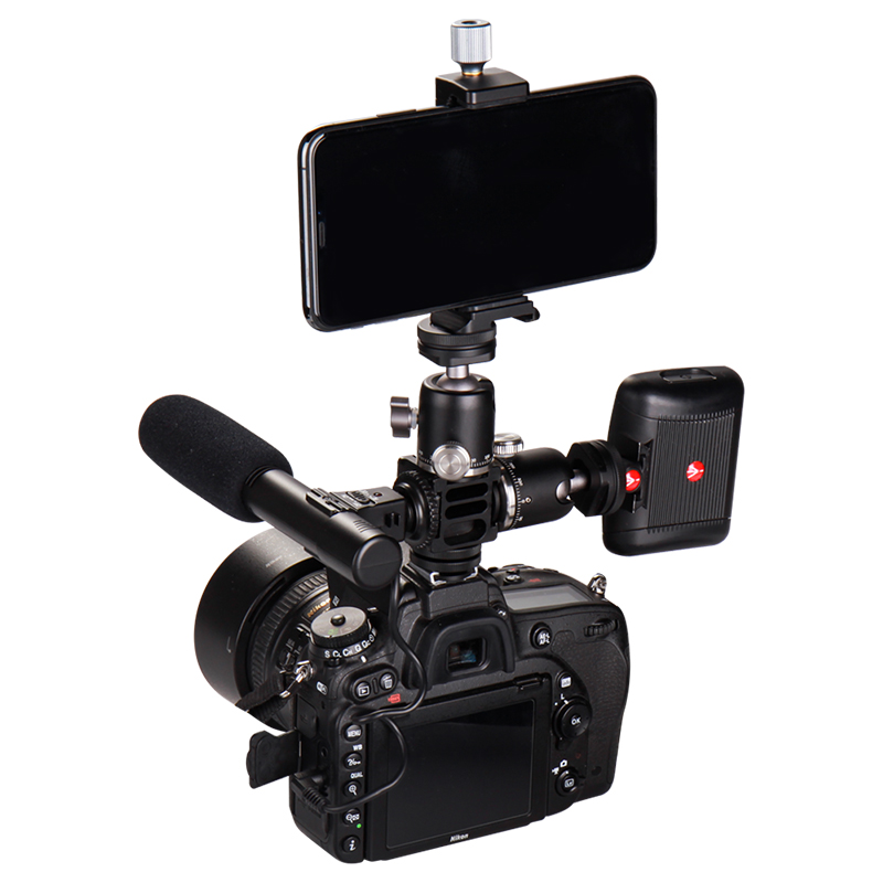 Micro single-eye camera camera rotating pan/tilt four-head hot shoe to fill flash microphone stand mobile phone monitor base accessories