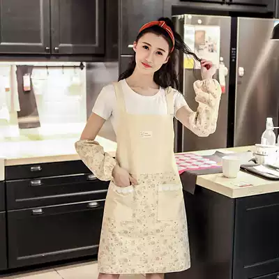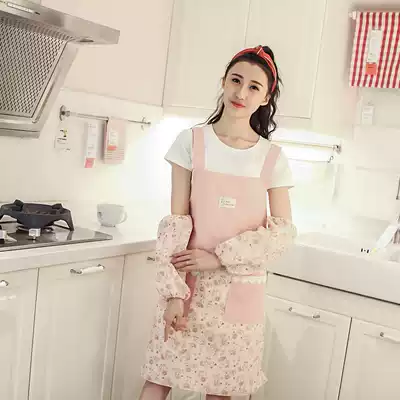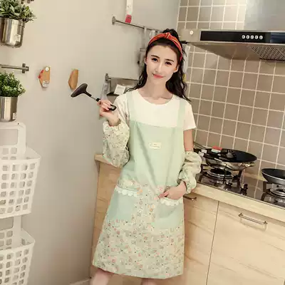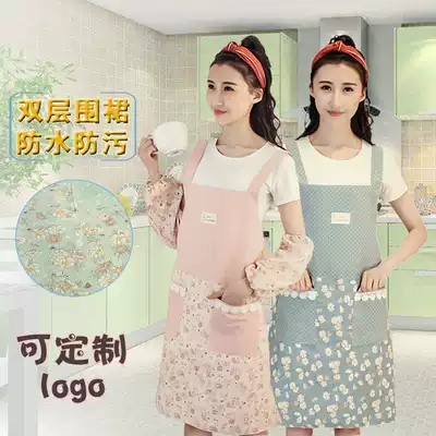 Cute Korean cartoon kitchen large size apron long sleeve waterproof and oil-proof Lady double breathable adult gown home