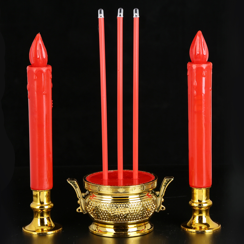 Self-produced battery for Buddha Qingming grave incense burner Led smoke-free electronic incense burner simulation luminous red candle