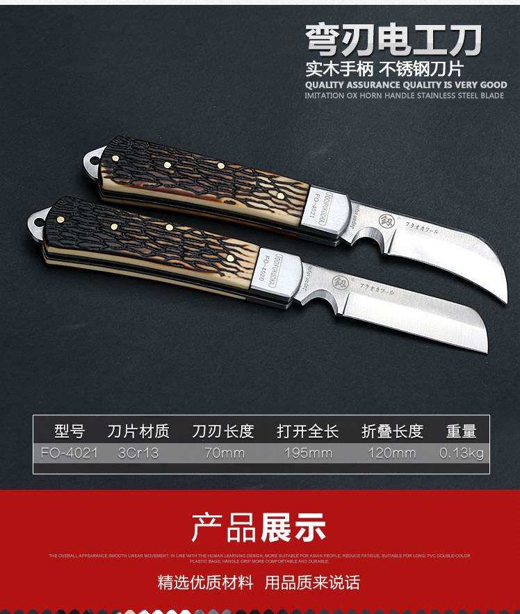 Japan Fukuoka stainless steel wire stripper electric knife peeling knife fruit knife portable folding cutter super hard cable knife