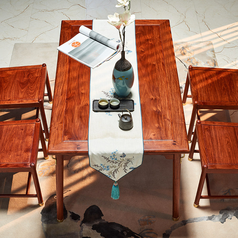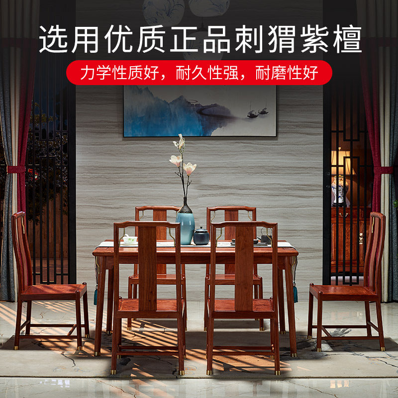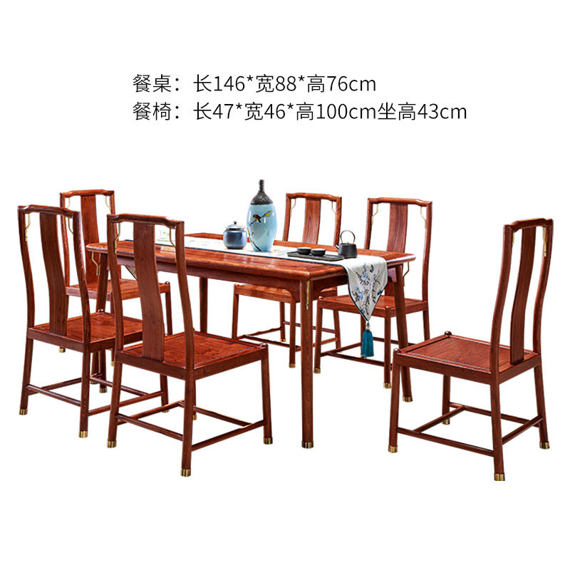 Mahogany dining table and chair combination dining room furniture new Chinese-style solid wood antique dining table rosewood rice table one table and six chairs