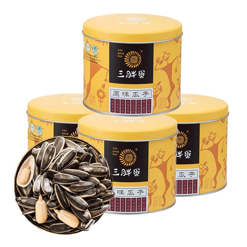 Three Fat Egg Official Flagship Store Melon Seeds Original Taste High-end Sunflower Seeds Canned 218g * 4 cans of seabed for the same melon seeds