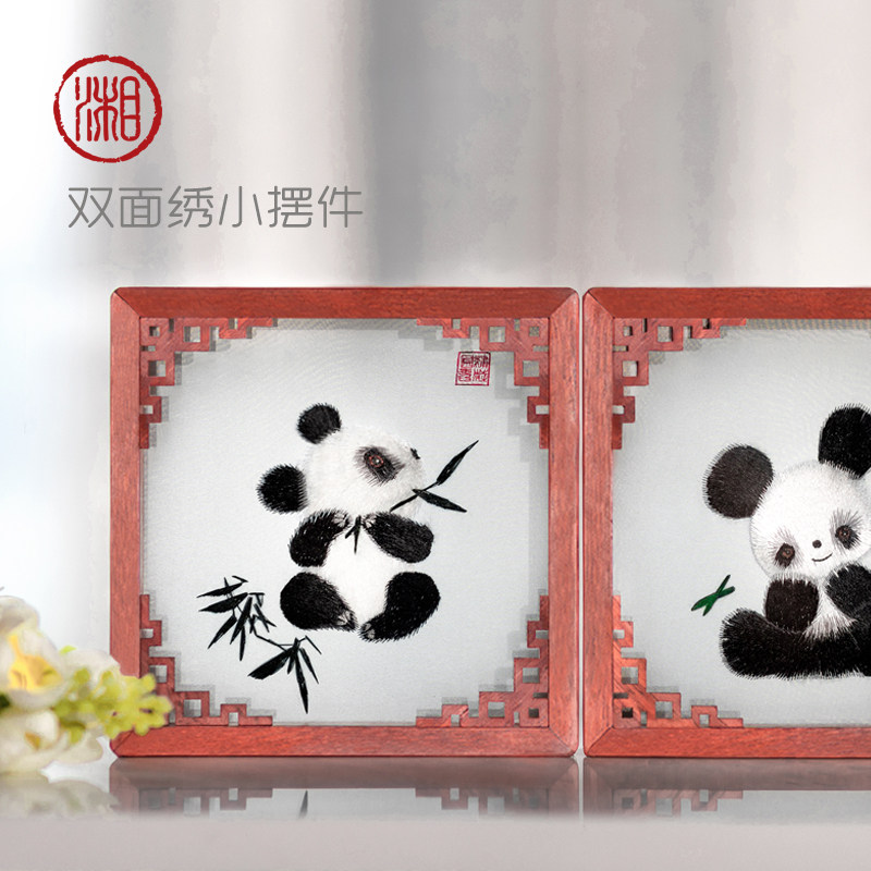 Xianghuan Original Xiangembroidery Classical Panda Pure Handmade Real Silk Bifacial Embroidered Table Pendulum Pieces China Wind Art Decoration Gift
