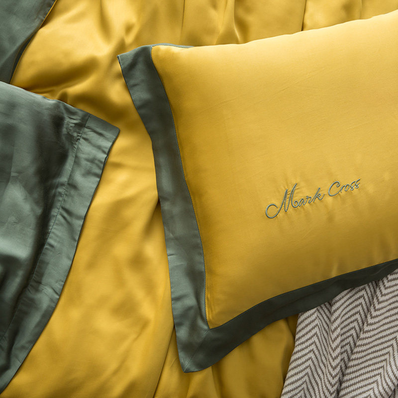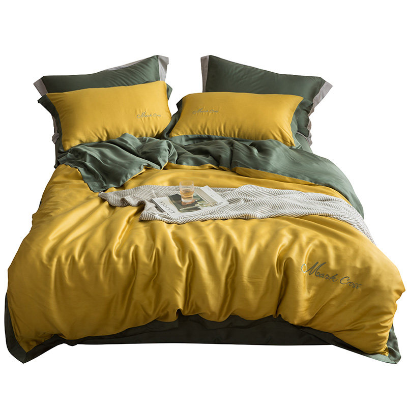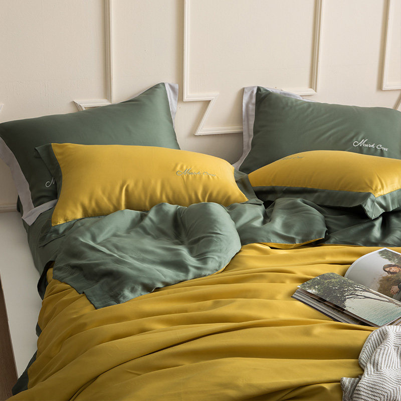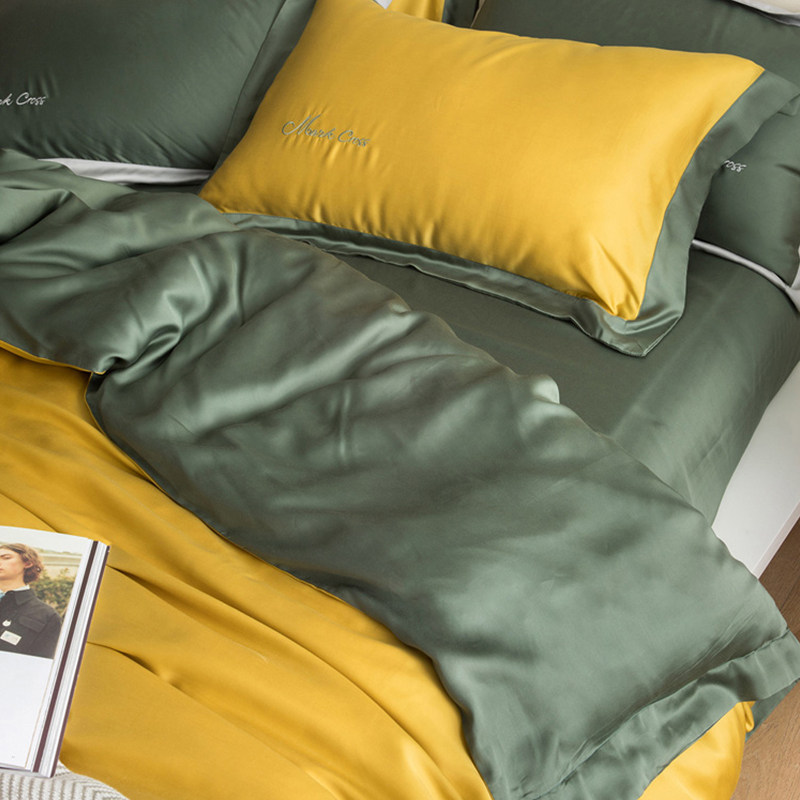 80 Tencel four-piece set summer summer naked sleep European-style ice silk smooth solid color simple sheet quilt bedding