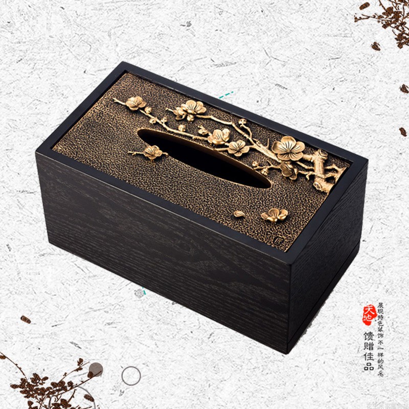 New Chinese tissue box wooden toilet paper box living room light luxury retro storage box decoration office toilet paper box ornaments