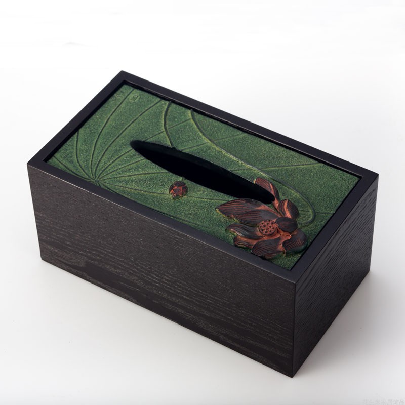 Light luxury three-dimensional relief solid wood tissue box new Chinese style