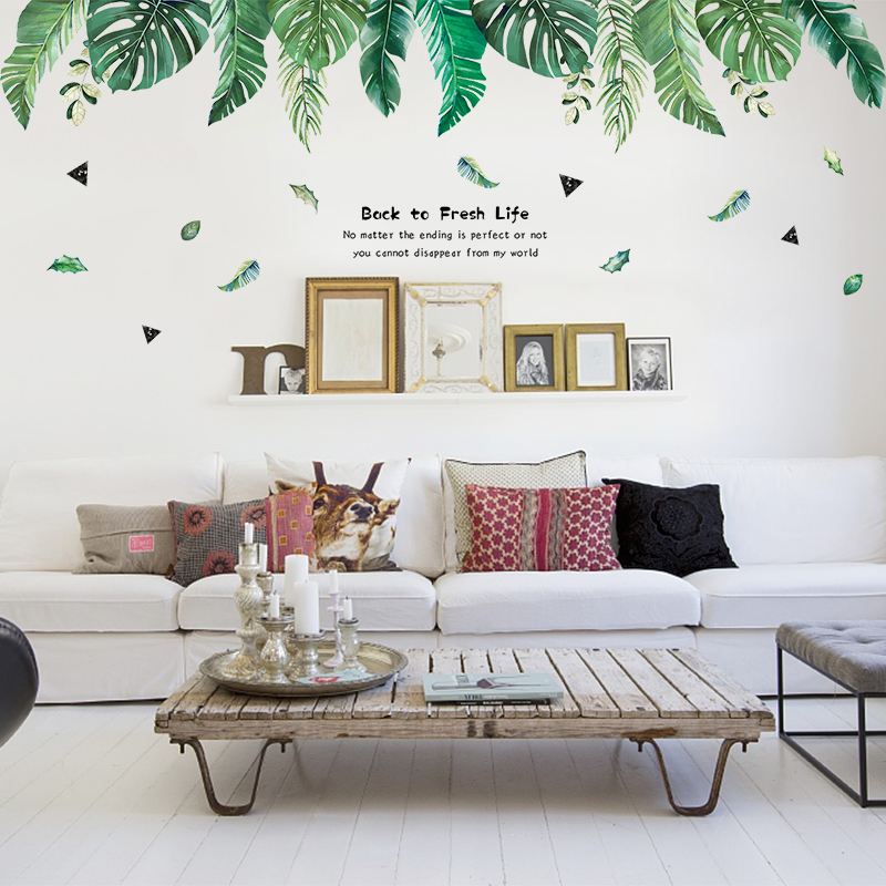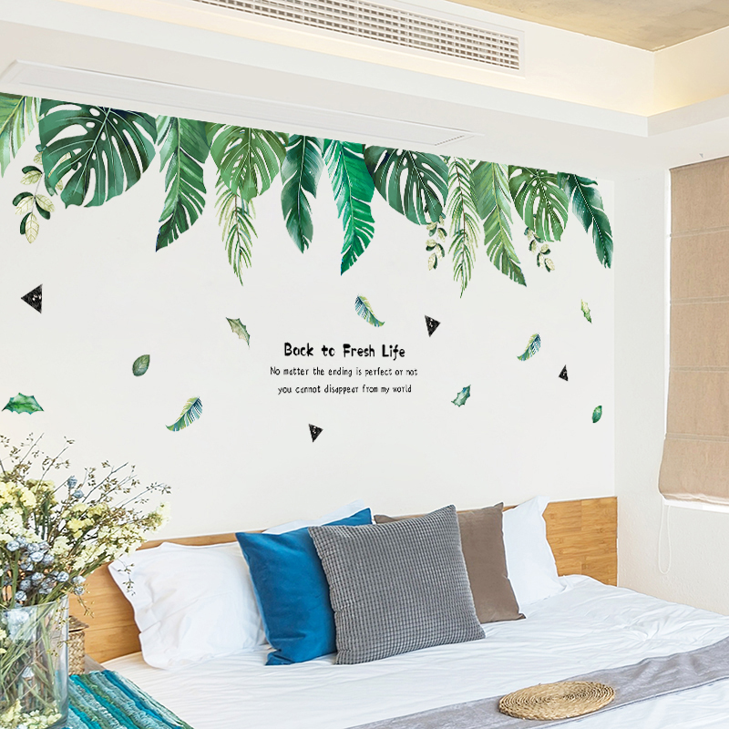 Hand-painted Tropical Plant Wall Sticker Self-Glued Room Background Wall Adornment Bedroom Bedside Cozy Dining Room Sticker