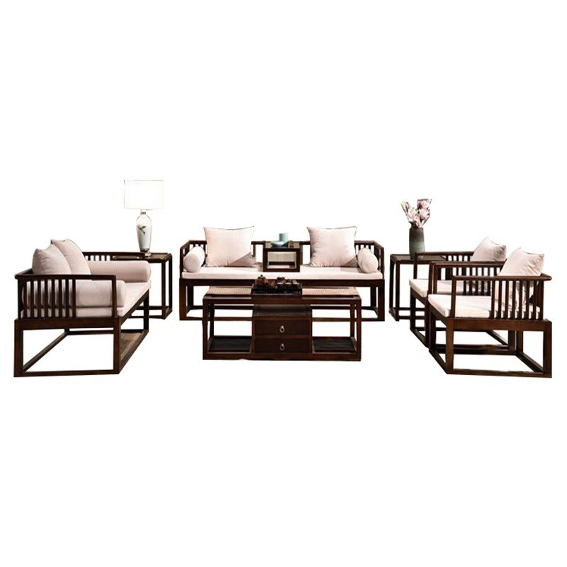 New Chinese solid wood sofa small apartment living room furniture simple Zen black gold luxury Arhat bed Chinese style villa