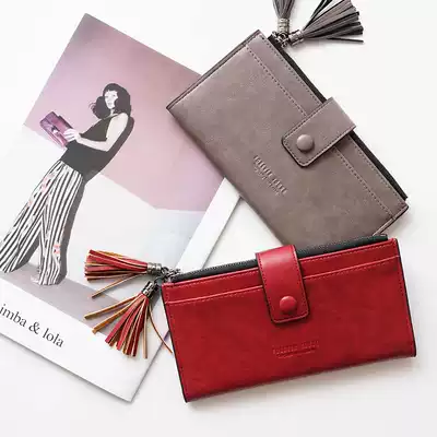 2020 new ladies double side zipper thin fashion long version half fold double tassel hand holding multi card mobile wallet