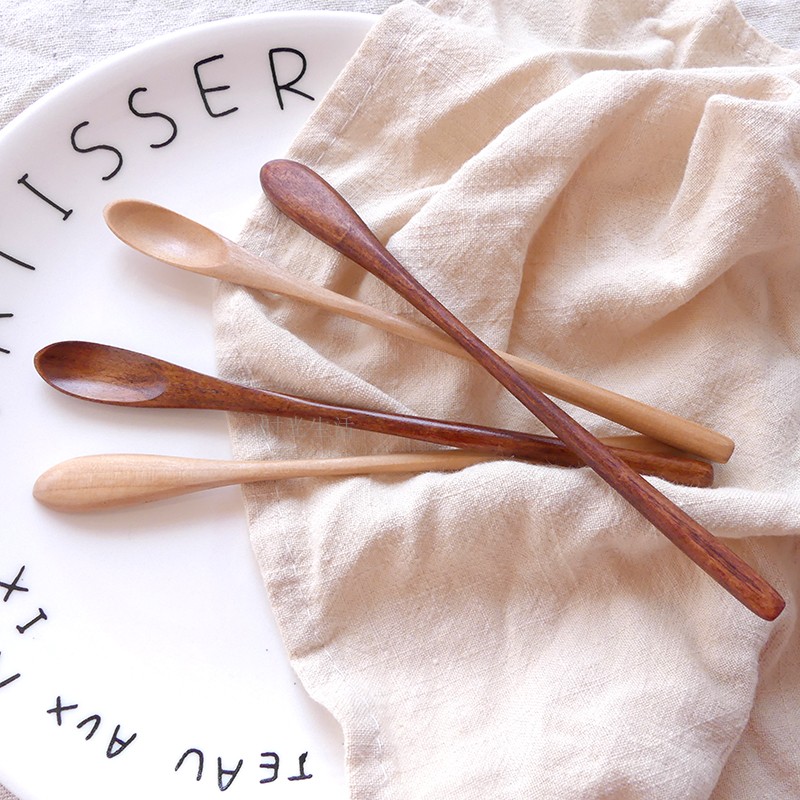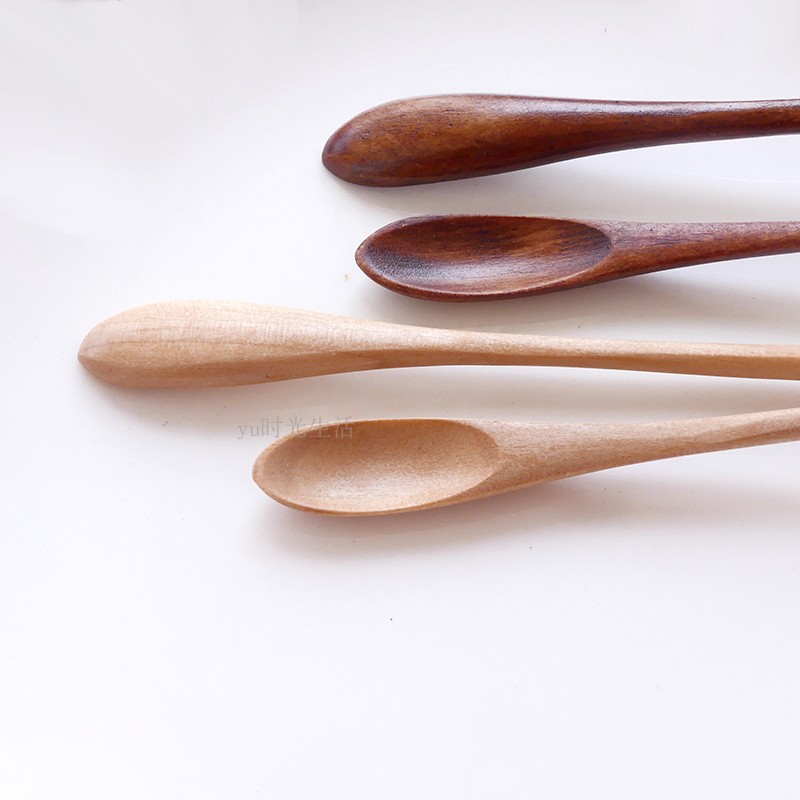 Japanese-style wooden spoon short handle small mouth mixing spoon mini small round handle small spoon thin handle coffee dessert spoon