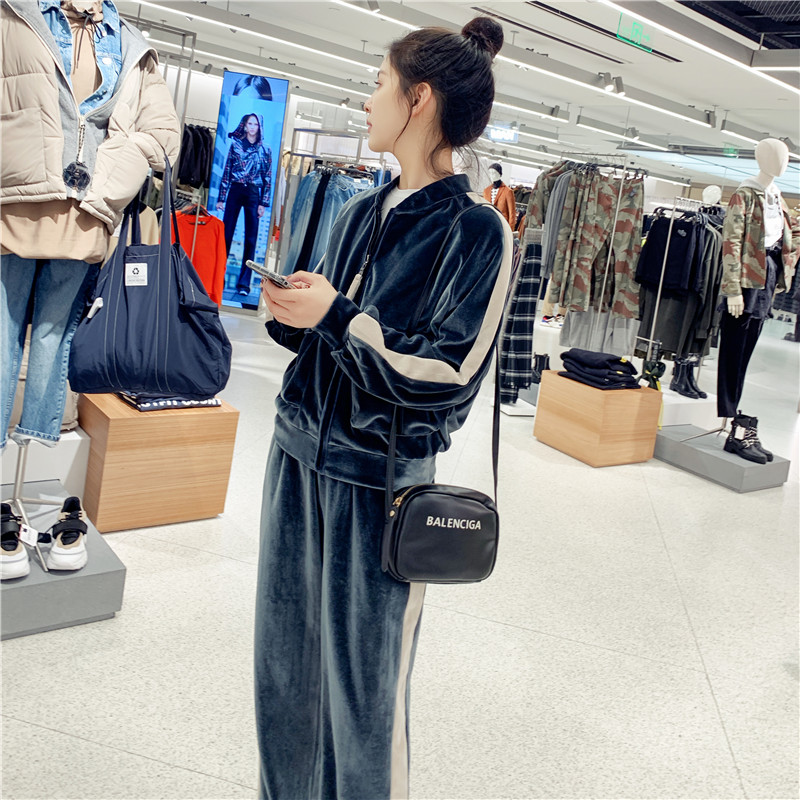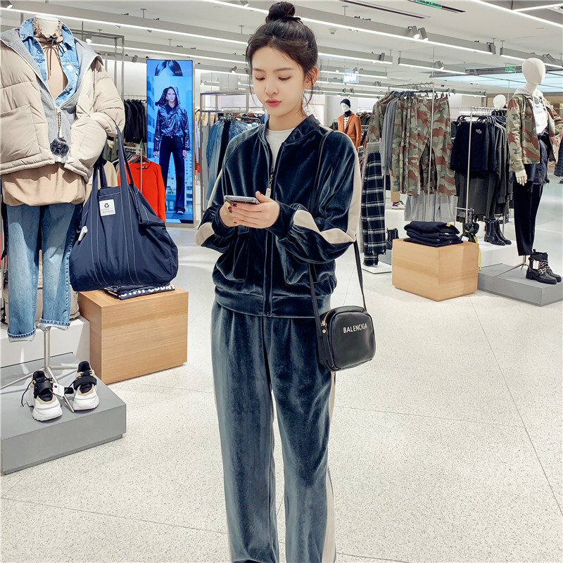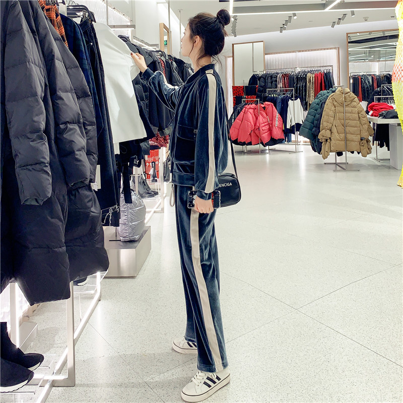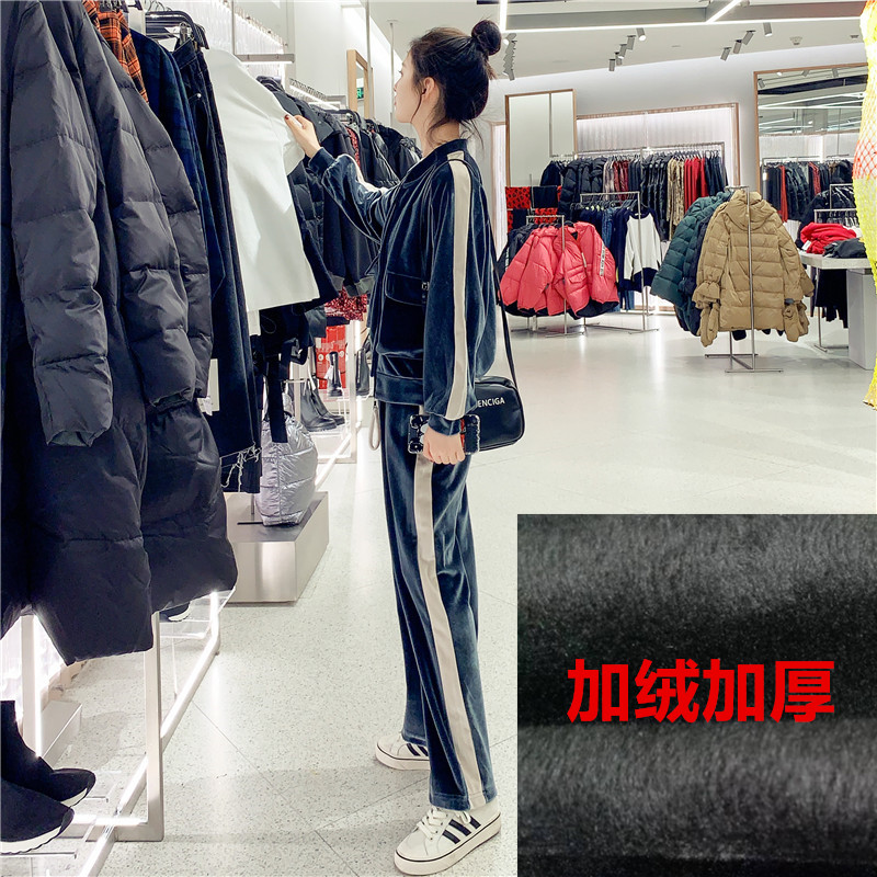 Two pieces of sportswear suit for female winter New 2022 velvet high waist leg pants