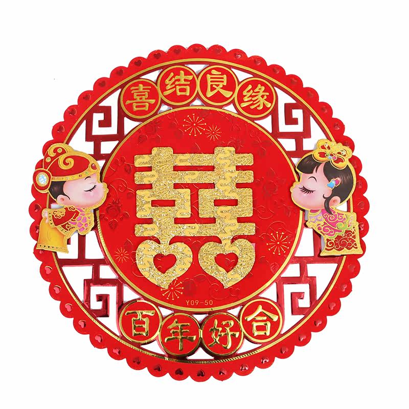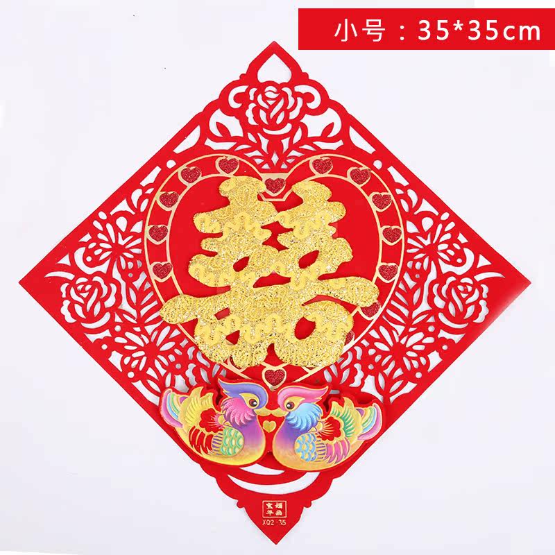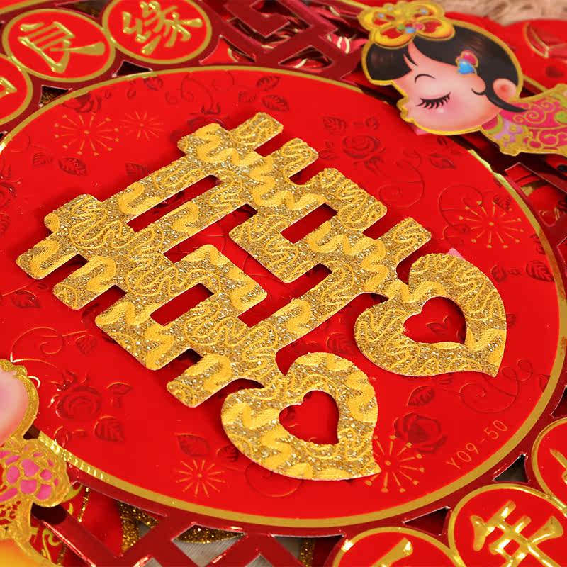 Boutique Wedding Happy word stickers Flocking Gold Powder Suede Great Joy Words Cut Paper Xi Window Stickup with Festive Character Items Decoration
